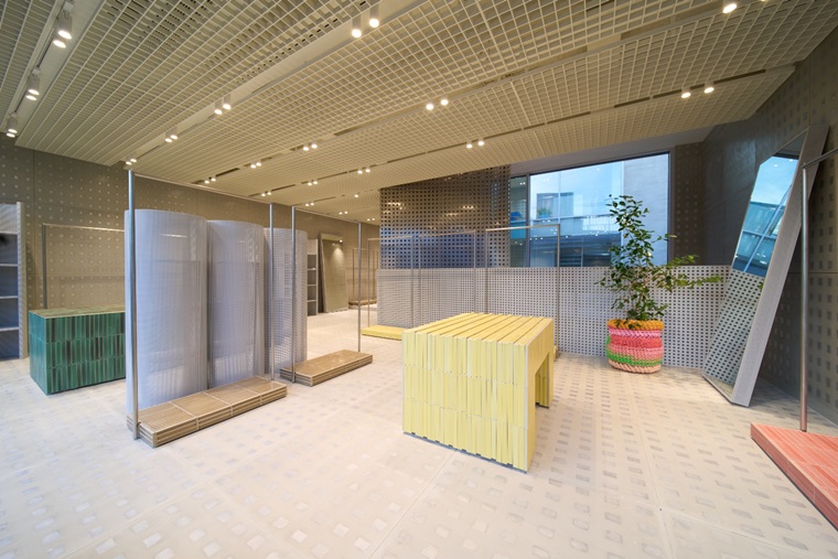 특히 ‘빛나는 청춘(Glittering Youth)’을 컨셉으로, 공간 안에 흩뿌려져 있는 반짝이는 젊음을 매장 중심을 관통하는 빛의 기둥과 그곳에서 떨어져 나온 광물들이 박혀있는 듯한 커스텀월로 구성된 공간을 비롯해 유약을 바른 타일, PVC와 3D 프린팅 기법을 이용한 오브제를 통해 표현했다.