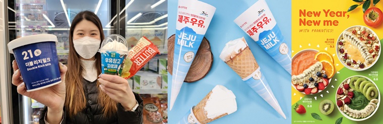 세븐일레븐도 제주에서 생산된 원유로 우유 본연의 맛을 강조한 ‘제주우유 콘아이스크림’을 출시했다. 이번 제품은 청정 제주 초지에서 엄격한 동물복지 기준에 따라 방목한 젖소가 만들어 낸 건강한 원유를 사용한 것이 특징이다. 기존 제품보다 원유 함량을 3배 이상 늘려 신선하고 풍부한 원유의 맛을 강조했다.