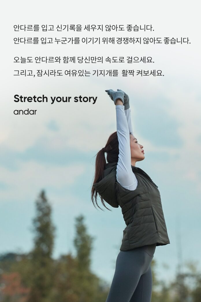안다르는 성과의 주요 배경으로 기존 스포츠웨어 시장과는 달리 개인의 건강한 라이프스타일을 지향하는 차별화된 전략을 꼽았다. 프리미엄 원단을 사용해 트렌디 한 디자인과 편안한 착용감을 내세우며 구축한 독보적인 업계 포지셔닝도 한 몫했다.