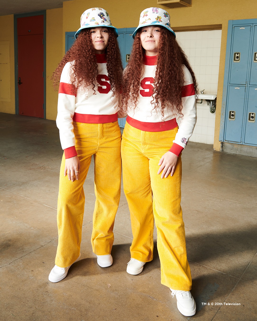 이 외에도, 스프링필드 학교에서 영감을 받은 옐로우 루즈핏의 코듀로이 재킷과 팬츠, 심슨 가족 프린트가 돋보이는 후드 리버시블 패딩 등 위트 넘치는 디자인을 선보인다.