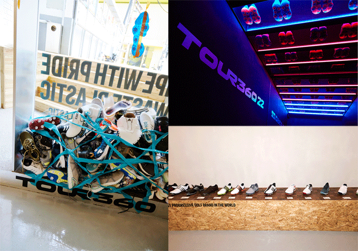 투어360 22 골프화 런칭 팝업스토어는 설치 미술가인 임수미 작가가 공간 전시 총괄 기획자로 맡았다. 배우 공효진, 려원 등과 절친한 친구로도 알려진 한 임수미 작가는 기존 팝업 스토어 형식에서 벗어나 아디다스골프 ‘투어 360’의 17년 헤리티지와 혁신을 보여줌과 동시에 포토스팟과 볼거리를 곳곳에 마련하여 색다른 즐거움을 추구하는 MZ세대 골퍼의 핫플레이스로 꾸몄다.