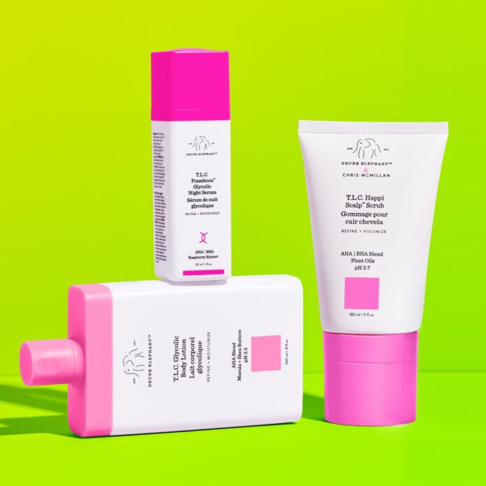 드렁크엘리펀트의 TLC 라인업은 글라이콜릭애씨드, 타타릭애씨드, 락틱애씨드, 시트릭애씨드가 블렌딩된 애씨드 드림팀이 건조하거나 자극적인 느낌 없이 피부에 쌓인 각질을 제거해주는 제품 라인이다. 스킨케어, 헤어&바디케어 제품으로 구성되어 머리부터 발 끝까지 데일리는 물론 스페셜한 각질 케어가 가능하다.