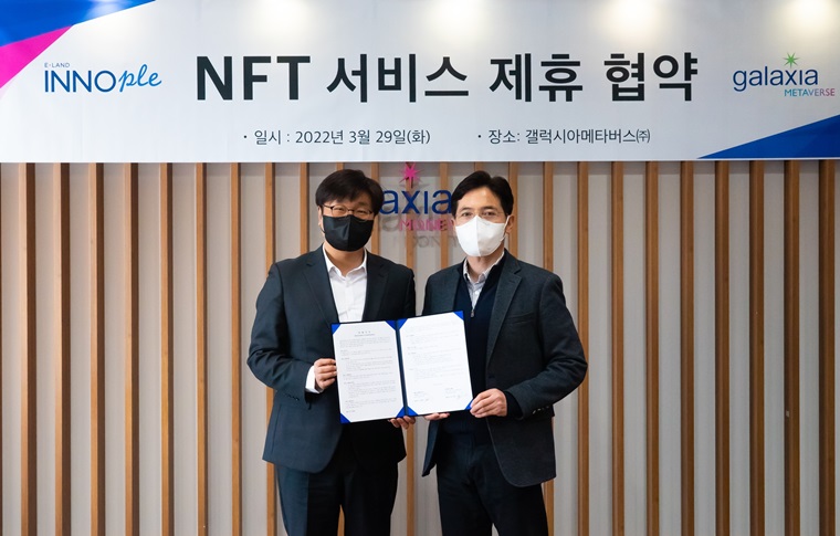 이랜드이노플(대표 김지원)과 갤럭시아메타버스(대표 고광림)가 NFT(대체 불가능 토큰) 사업 협업 파트너십을 골자로 하는 업무협약을 체결했다고 30일 밝혔다.