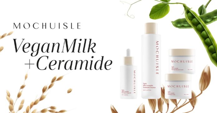 모쿠슈라 화장품이 처음으로 선보이는 제품은 독자성분 ‘비건 밀크 세라마이드’가 주 성분인 스킨케어 4종이다. 비건 밀크 세라마이드는 국내산 쌀, 귀리, 콩으로 만든 비건 밀크에 피부 장벽을 구성하는 세라마이드를 배합한 성분으로 임상 시험을 통해 피부 장벽 개선 효과가 있음을 인증받았다.