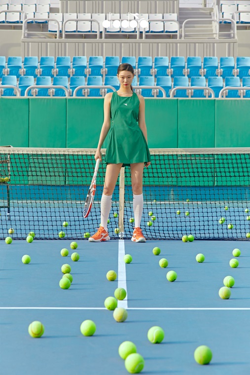 배윤영이 착용한 의상은 테니스를 당장 시작하고픈 충동을 불러일으킬 정도로 코트의 매력과 잘 어울린다. 선명한 그린 컬러의 ‘레지나 테니스 원피스’는 간결한 전면과 대비되는 절개와 주름장식의 반전 뒤 태가 포인트이다. 클래식한 테니스 룩을 응용한 크롭 기장의 피케셔츠와 숏츠스커트를 비롯해 티셔츠, 반바지, 바람막이 등 취향 것 골라 입을 수 있는 다양한 우먼스 테니스 컬렉션이 영상을 꽉 채운다. 격렬한 동작이 많은 테니스 종목 특성에 맞춰, 동적인 실루엣의 우아함까지 고려한 디자인요소 반영도 특징.