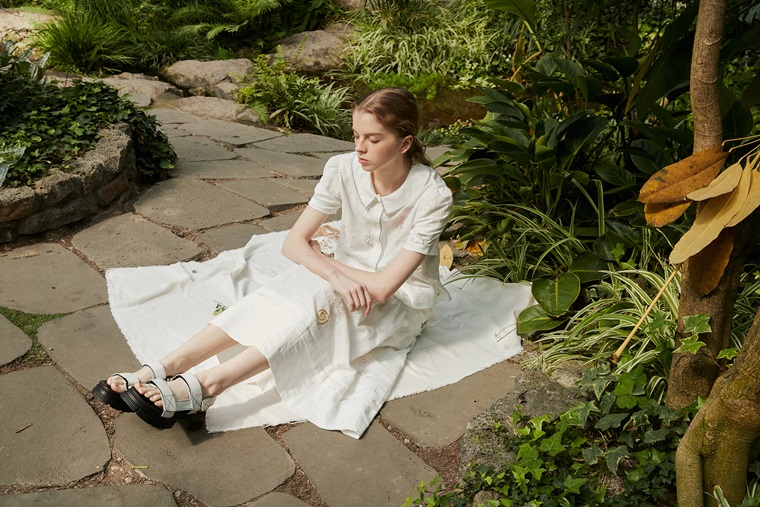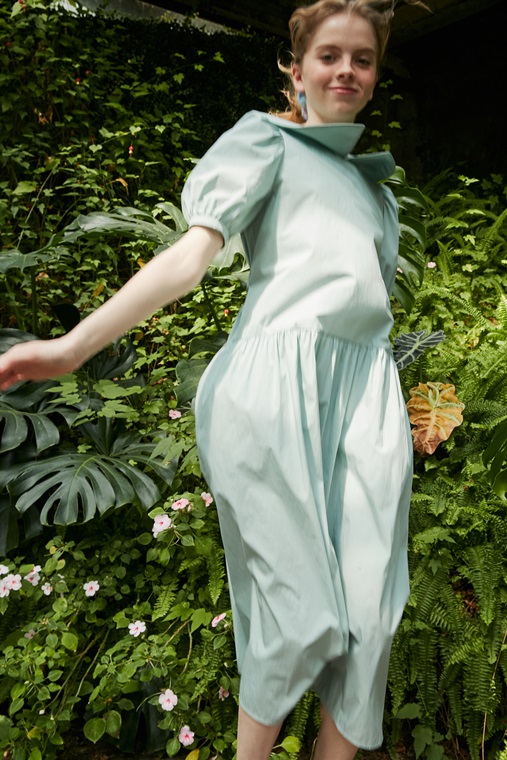 비이커는 다양한 색상이 조합된 패치워크 프린트와 입체적인 실루엣을 적용한 민소매 드레스, 큼직한 칼라(collar)와 벌룬 소매, 스커트 셔링이 돋보이는 민트 컬러의 반팔 드레스, 러플 디테일의 비대칭 칼라가 독특한 미니 원피스, 핀턱 디테일로 볼륨감을 준 자수 블라우스와 풀 스커트 등 사랑스러운 분위기의 착장을 선보였다. 또 빈티지한 크로셰 디자인의 니트 베스트와 카디건, 워크웨어 무드의 데님 오버롤 등 다양한 아이템을 믹스 앤드 매치한 스타일링도 함께 제안했다.
