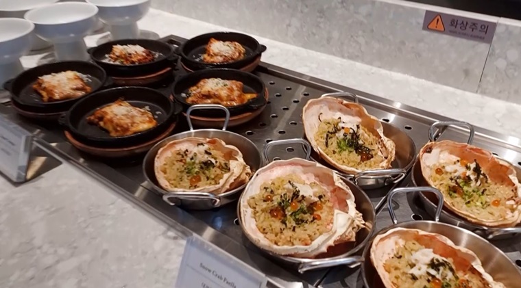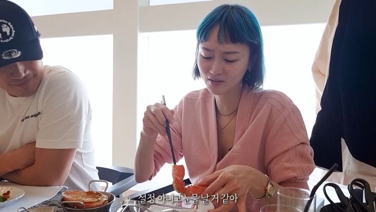 음식을 담으러 가는 길에 “원래 고기부터 먹으면 금방 배불러, 그렇다고 샐러드부터 먹으면 샐러드도 금방 배불러, 해산물부터 먹어야 돼”라며 뷔페 이용 꿀팁을 전수했다.