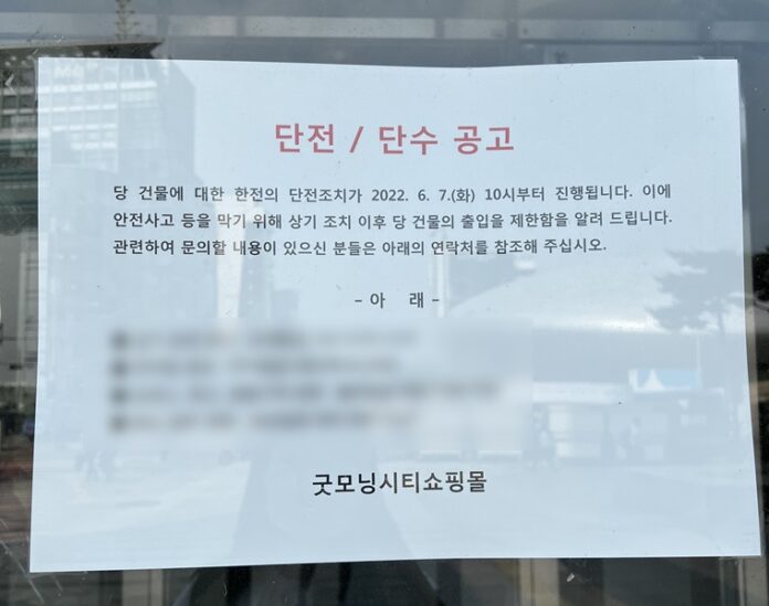 지난 6월 7일 오전 10시, 굿모닝시티쇼핑몰 관리단은 전기료 미납으로 한전의 단전 조처가 내려지자 안전사고를 이유로 한때 상인들의 출입을 통제했다. 현재는 상인들의 모금으로 급한 불을 끄면서 영업이 재개됐지만, 상인과 입주 기업들은 언제 내몰릴지 모르는 위기 상황에 불안해 하고 있다.