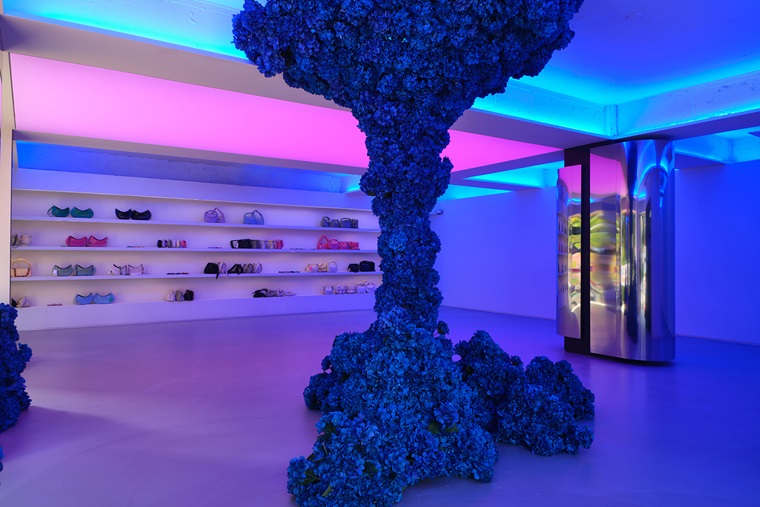 2022년도 첫 번째 테마 컬러는 핑크로, 거울로 둘러싸인 핑크 미러룸과 매장이 한눈에 보이는 둥근 형태의 미러 오브제를 포함해 기획 전시인 플라워 아트워크까지 3가지 포토존이 구성되어 있다.
