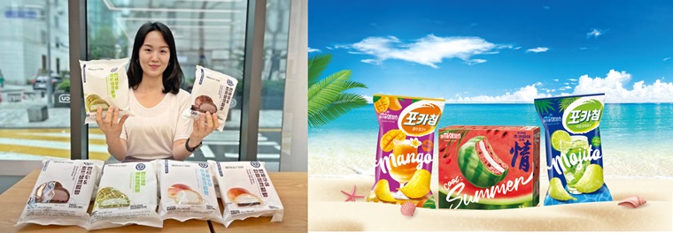 오리온은 올여름 한정판 제품으로 ‘초코파이情 수박’과 ‘포카칩’ 2종(훌라망고맛, 라임모희또맛)을 출시했다. ‘초코파이情 수박’은 파이 속 마시멜로에 수박 과즙을 넣어 과하지 않고 자연스러운 과일의 맛을 담았다. 맛뿐만 아니라 생김새에서도 수박을 떠올릴 수 있도록 파이의 겉 부분을 수박 껍질 무늬로 코팅하고 붉은색 빵으로 수박 과육을 표현했다.