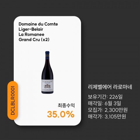 국내 최다 이용자를 보유한 수집품 조각 투자 플랫폼 트레져러는 올 6월 매각 상품 평균 수익률이 19.14%를 달성했다고 밝혔다. 모집 후 매각된 제품들은 에르메스 켈리백, 리제벨에어 라로마네 와인, 롤렉스 익스프로러 2이며, 평균 매각 소요 기간은 202일(약 6.7개월)이었다.