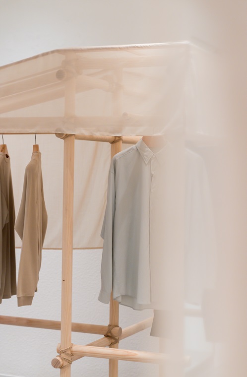 또 원단을 감은 형태에서 아이디어를 착안해 원단의 가능성과 확장성을 팝업 공간으로 표현했다. 원단이 방적돼 사람에게 입혀지면 옷이라는 개성을 가진 사물로 완성되고, 옷이 입혀진 형태는 원단의 가능성과 확장성에 의해 존재가치가 결정된다는 이와이 료타의 철학이 담겼다.