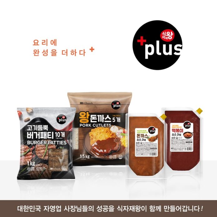 ‘식자재왕 플러스(PLUS)’는 완성해 나간다는 의미를 담은 브랜드로, 소스, 육가공품 등으로 구성된다. 소스 라인은 최신 맛집 트렌드를 반영하여 소규모 레스토랑이나 전문점에서 그대로 활용할 수 있도록 완성도를 높이고 맛의 질을 끌어올렸다. 신제품 ‘식자재왕 플러스 돈까스 소스’, 식자재왕 플러스 떡볶이 소스’는 가장 핫한 맛 트렌드에 맞춰 개발한 오리지널 레시피 제품이다.