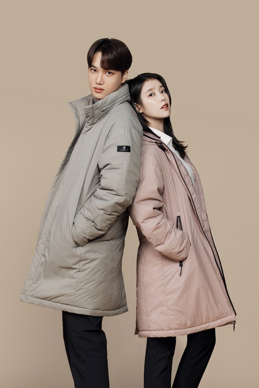 특히, 플리스 코디로 아이유는 레깅스, 카이는 조거 팬츠를 선택해 사랑스러우면서도 자유분방한 무드를 살렸으며, 블랙 팬츠와 매치한 다운 자켓은 시크한 매력을 살려 코트처럼 입을 수 있는 장점을 한껏 부각시켰다.