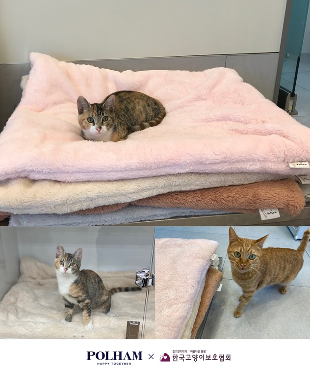 폴햄은 대한민국을 대표하는 의류 브랜드로서 폐원단 활용과 지속가능성에 대한 연구를 거듭한 끝에 지난 겨울부터 포근방석, 올 여름에는 쿨텐션 소재의 쿨방석, 그리고 이번 회복 담요까지 유기묘와 길 고양이들의 더 나은 삶을 지원하는데 그 뜻을 모았다.