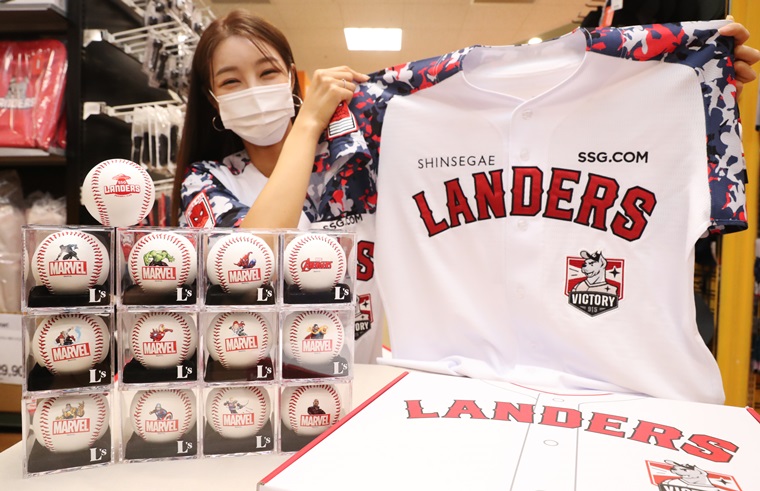 이마트는 17일(토)부터 인천SSG랜더스필드 외야에 위치한 이마트 SSG랜더스 굿즈숍에서 SSG랜더스 ‘마블 에디션’ 유니폼과 SSG랜더스 ‘마블 에디션’ 기념구를 한정 판매한다. 이달 5일 G마켓에서 단독 판매한 마블 유니폼 500장이 10분 만에 조기 완판돼 추가 물량 400장을 준비했다.
