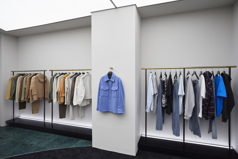 솔리드옴므의 트렌디한 디자인은 어바웃 패션의 고급스러운 인테리어와 어우러지며 세련된 감성을 극대화한다. 의류를 하나의 오브제로 돋보이게 하는 조명과 심플하고 모던한 인테리어로 갤러리 같은 공간을 구현했다.