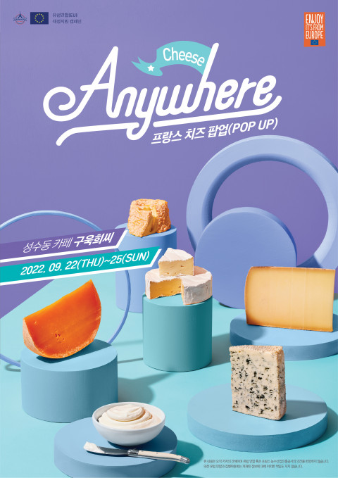 누구나 사전 예약 없이 방문할 수 있는 이번 팝업은 유럽 연합(EU)과 프랑스 국립낙농협의회(CNIEL)가 주최한 유럽 프랑스 치즈 홍보 캠페인의 일환으로 개최된다. 팝업에서는 올해 테마인 ‘Anywhere’에 맞춰 프랑스 치즈와 떠날 수 있는 모든 장소를 생생하게 재현해 새로운 볼거리와 체험을 제공한다.