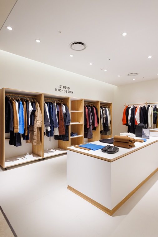 또 글로벌 매장 콘셉트를 토대로, 모던한 감성과 상반된 소재의 우아함의 조화를 강조한 매장을 구성했다. 단단하고 내구성 있는 매장의 표면과 섬세한 우븐의 매칭을 세련되게 강조했다.스튜디오 니콜슨의 패딩ㆍ재킷ㆍ코트는 70~200만원대, 팬츠ㆍ스커트는 35~80만원대, 티셔츠는 15~40만원대, 셔츠ㆍ블라우스는 45~70만원대, 니트는 40~80만원대, 스니커즈는 20~50만원대이다.