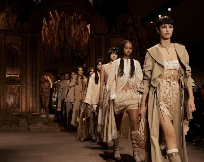 디올의 2023 봄-여름 레디-투-웨어 패션쇼는 디올 여성복 크리에이티브 디렉터인 마리아 그라치아 치우리의(Maria Grazia Chiuri) 손길로 탄생했으며, 여성이 지닌 다면적인 힘을 탐구하는 이들의 매혹적인 에너지가 담긴 컬렉션을 선보였다.