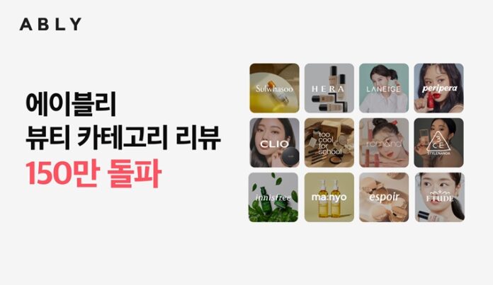 에이블리코퍼레이션(대표 강석훈)이 운영하는 스타일 커머스 플랫폼, 에이블리는 뷰티 카테고리 누적 리뷰가 백 오십만 건을 돌파했다고 20일 밝혔다.