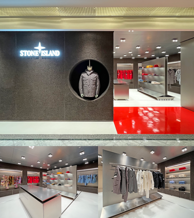 더불어 스톤아일랜드 디자인과 제품에 대한 연구와 실험에 대한 헌신을 고스란히 담아내 팬들과 소통하고 공유할 수 있게 만들었다. 입구의 아이코닉한 스톤아일랜드 로고와 함께 대조적인 빨간 색상이 눈길을 끌며 내부는 주력 컬렉션 별로 디스플레이 됐다.