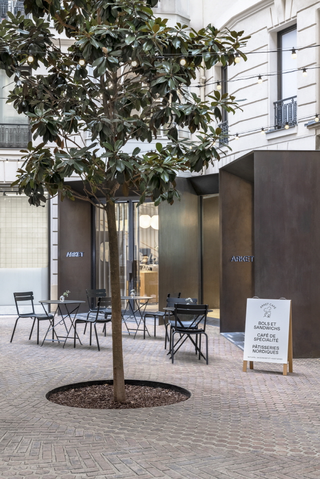 아르켓 카페는 1층에 위치하여, 모던한 라이프스타일 마켓을 지향하는 아르켓의 아늑한 중심 역할을 한다. 안뜰에는 야외석도 마련되어 있다. 많은 사람들의 사랑을 받는 스웨덴 셰프 마틴 베르그(Martin Berg)가 개발한 베지테리언 메뉴에는 그린 밀, 샌드위치, 페이스트리, 파리 스토어에서만 판매하는 스몰 플레이트, 그리고 오가닉 와인 등이 있다.