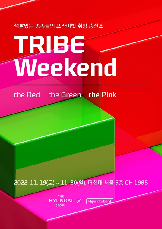 현대카드가 주최하는 ‘트라이브 위켄드’는 현대카드의 프리미엄 카드 라인인 더 레드(the Red), 더 그린(the Green), 더 핑크(the Pink) 사용 고객들을 대상으로, 오는 11월 19일부터 20일까지 이틀간 더현대 서울 6층 ‘CH 1985’에서 진행된다.