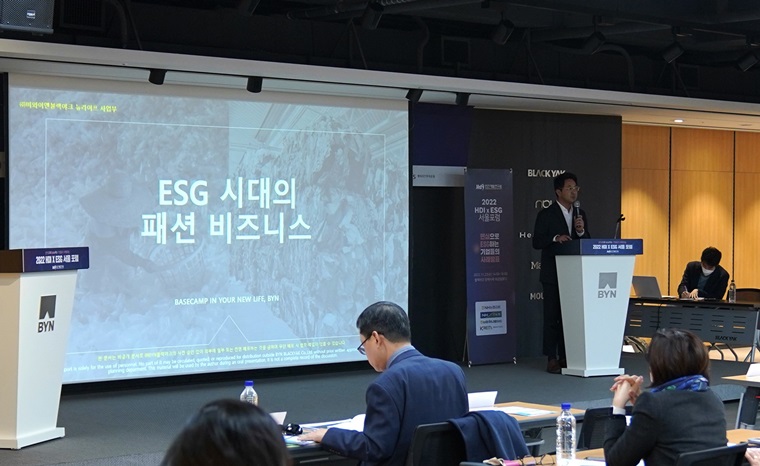 글로벌 아웃도어 기업 비와이엔블랙야크(회장 강태선)가 23일 열린 ‘2022 HDI X ESG 서울 포럼’(이하 포럼)에 참가해 국내 투명 페트병 자원 순환 시스템을 소개했다.