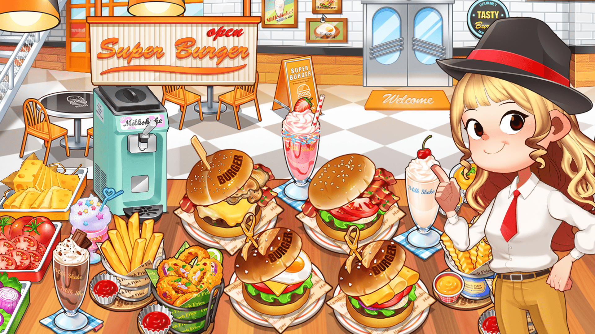 두툼한 패티 위 잘 구운 버섯과 베이컨, 신선한 야채 등 개인의 입맛과 취향에 따라 즉석에서 만들어지는 수제 버거, 우유와 아이스크림을 블렌딩한 부드럽고 달콤한 셰이크, 고소하고 바삭한 양파튀김 세트 등을 포함해 슈퍼 버거의 감성과 스타일이 깃든 다양한 메뉴를 게임을 통해 만나볼 수 있다.