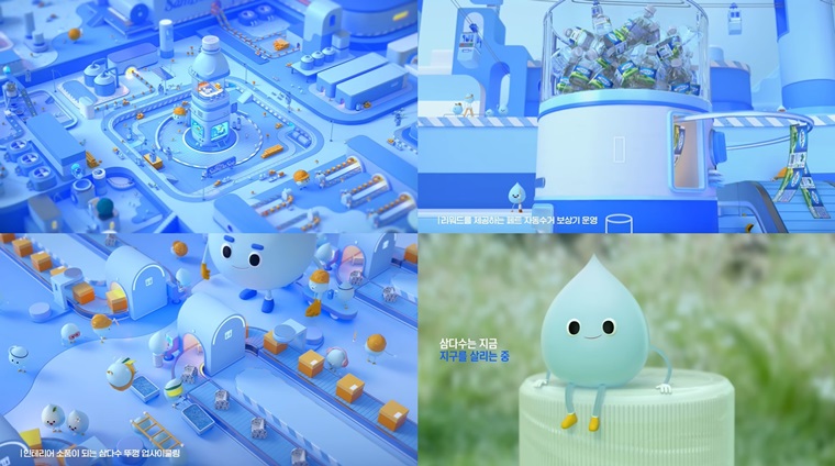 제주삼다수 유튜브를 통해 공개한 친환경 브랜드 스토리 필름은 제주삼다수에서 추진하는 친환경 활동을 귀여운 캐릭터와 함께 ‘삼다수는 지금 지구를 살리는 중’이라는 메시지로 소개하고 있다. 이를 통해 자연스럽게 자원순환 시스템 구축을 위한 제주개발공사의 노력을 알리고 제주삼다수가 추구하는 친환경의 가치를 알리는 것이 목표다.