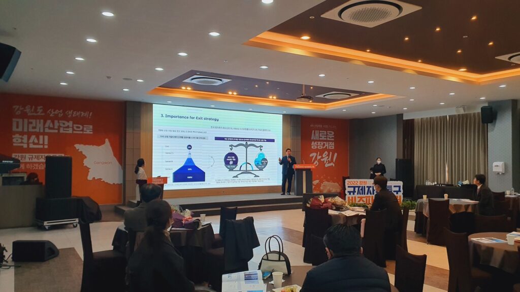 이 행사는 강원도와 강원테크노파크가 주최해 강원도 내 규제자유특구 사업에 참여 중인 20여개 기업을 대상으로 그간의 성과를 공유하고 향후 투자유치 및 스케일업을 지원하기 위하여 투자 관계 기관(벤처캐피탈, 컨설팅사)과의 상담 및 네트워킹 기회를 제공하기 위하여 마련됐다.