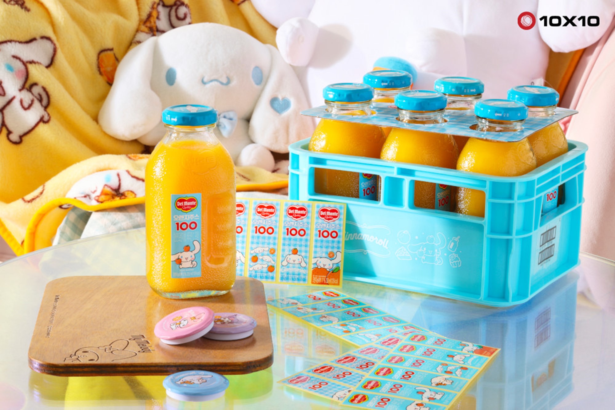 음료를 마신 후에도 레트로 소품으로 활용할 수 있는 ‘델몬트 오렌지주스100’ 250ml 미니병 6개와 라벨 스티커, 캐릭터별 컬러로 표현된 플라스틱 상자가 공통으로 구성됐다. 이 외에 시나모롤 쿠션&담요, 쿠로미 키링&파우치 세트, 마이멜로디 우드 트레이 등 캐릭터별 추가 구성도 포함됐다.