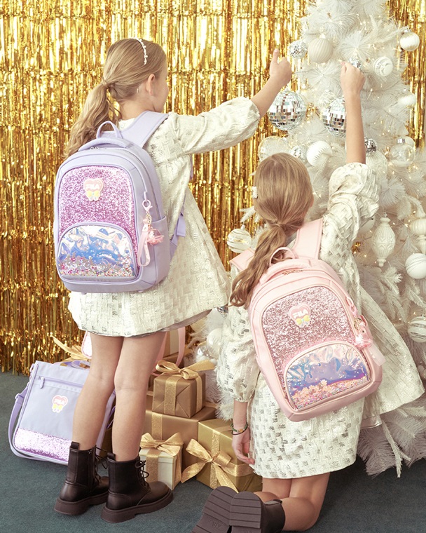 세트로 구성된 보조 주머니 하단부에도 역시 글리터 디테일을 반영했으며, 탈부착 가능한 워터볼 참 장식이 파티처럼 즐거운 등굣길을 더욱 빛나게 해준다. 핑크와 바닐라, 라일락 등 여아의 눈길을 사로잡는 화사한 세 가지 색상으로 구성됐다.