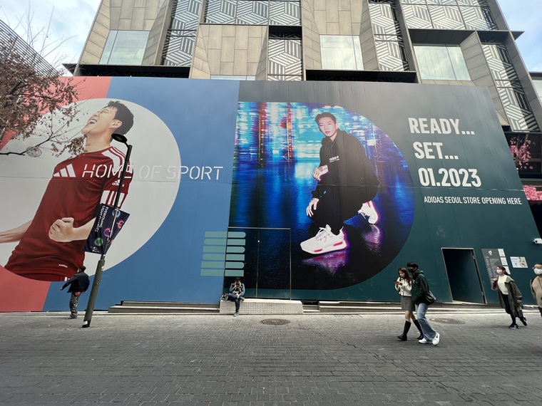 이전에 ‘에이랜드’ 건물에 있던 ‘아디다스’는 명동 중앙로 엠플라자 빌딩 1~2층 자리로 옮긴다. 12월 중순 현재 인테리어 공사가 한창인 ‘아디다스’는 이달 1월경 오픈을 목표로 하고 있다. 이곳은 자라 명동 2호점이 있던 곳으로 기존에 자라가 쓰던 1~2층에 지하 1층을 더해 전체 면적 760평으로 큰 규모를 자랑한다. ‘아디다스’는 이곳 플래그십스토어를 통해 나이키와 경쟁하고, 바짝 뒤쫓고 있는 뉴발란스를 견제할 계획이다.