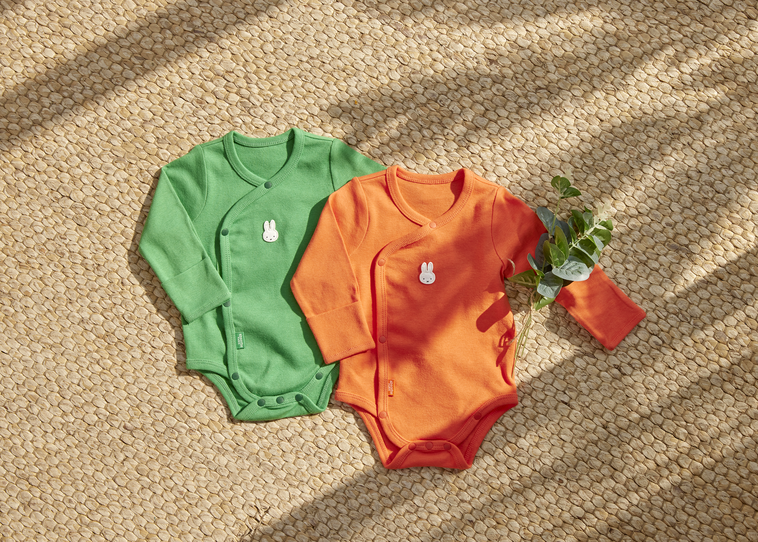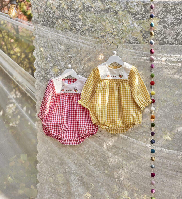 특히 신생아부터 입을 수 있는 후라이스 소재의 미피 모자와 배내슈트 세트는 미피의 원작자인 딕 브루너가 그림책에서 사용한 컬러로 브루너 컬러라고 불리는 원색의 오렌지, 노랑, 초록, 파랑색의 다양한 컬러와 미피 캐릭터가 포인트로 있으며, 같은 컬러로 구성된 미피 와펜 양말과 함께 구매 시 토끼띠 아기들에게 의미 있는 선물로 활용 가능하다.