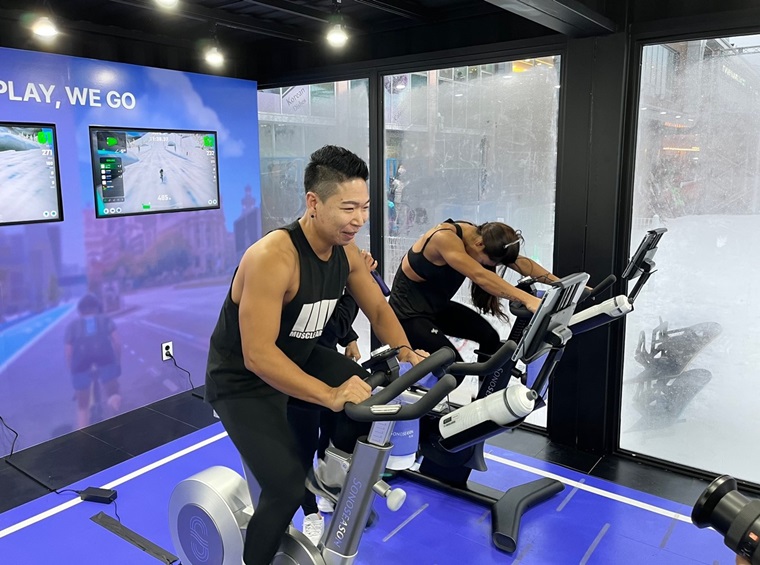 지난 14일 강원도 홍천 비발디파크 내 ‘소노시즌 플레이’ 팝업에서 열린 ‘소노시즌 플레이 랜선 라이딩 대회’ 결승전에서 최종 파이널에 오른 두 팀이 뜨거운 경쟁을 펼치고 있다. 소노시즌 플레이의 체험 캠페인 ‘플레이 위 고’의 일환으로 열린 이번 대회는 고객들에게 건강한 운동 문화를 고객에게 전파하는 중요한 구심점인 소노시즌 플레이 강사진을 대상으로 펼쳐졌다.