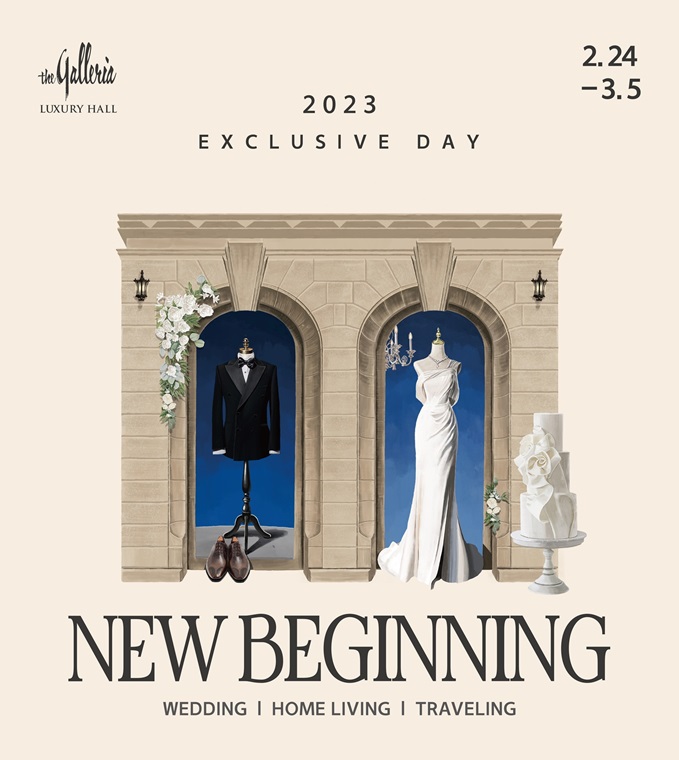 갤러리아백화점은 오는 24일부터 내달 5일까지 서울 명품관에서 ‘뉴 비기닝 2023 (NEW BEGINNING 2023)’ 행사를 개최한다고 22일 밝혔다. 행사 기간 동안 웨딩 프로모션, 봄 신상품 할인, 라이프스타일 및 여행 팝업 등이 진행된다.