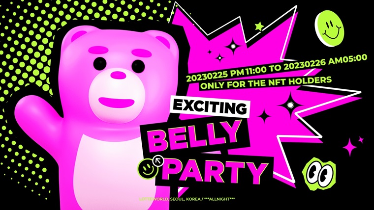 롯데홈쇼핑(대표 김재겸)은 오는 25일(토) 밤 11시부터 26일(일) 오전 5시까지 서울 잠실 롯데월드에서 벨리곰 NFT홀더를 위한 벨리 파티(BELLY PARTY)를 진행한다.
