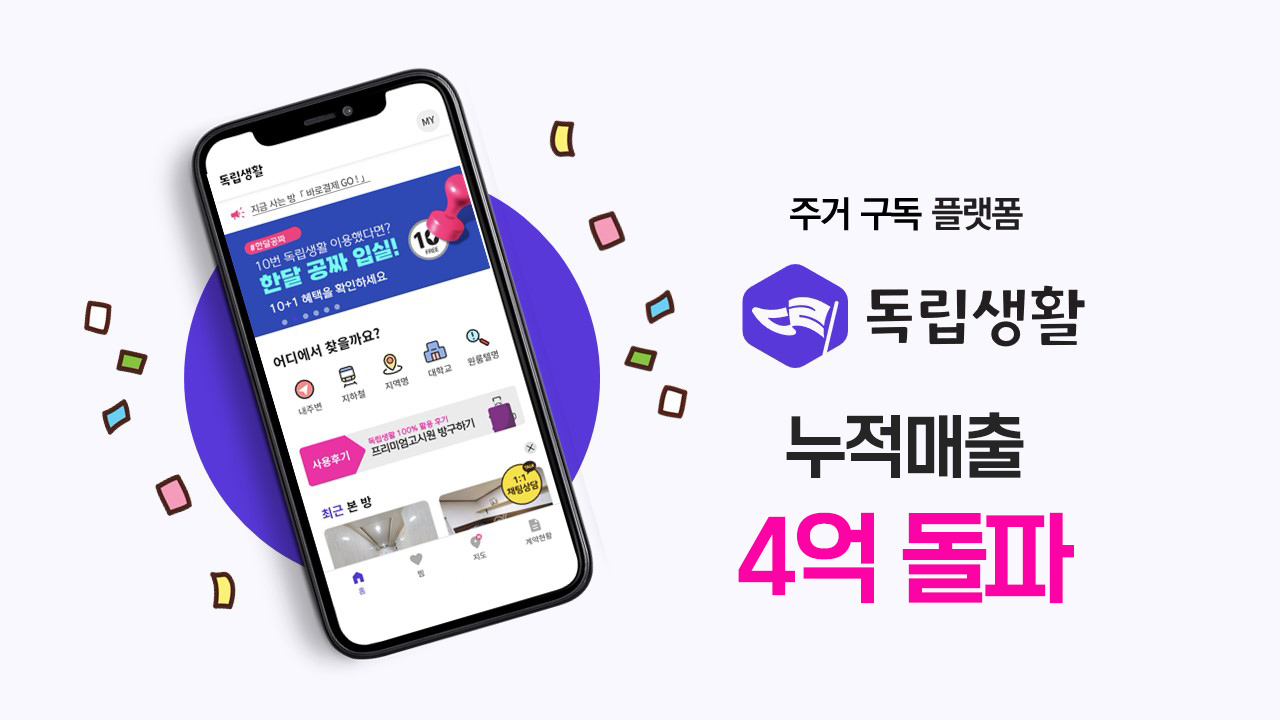 독립생활, 월 기준 주거구독 플랫폼으로 출시돼 8개월만에 누적 매출 4억 돌파
