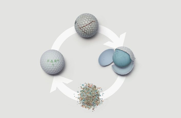 반면, FAR5의 에코볼은 수거된 헌 골프공을 레이저 기술을 통해 분해, 원재료화 시킨 후 다시 조합해 새로운 골프공으로 탄생시키는 기술을 적용했다. 이는 기존 골프공을 낭비 없이 그대로 활용할 수 있어 자원의 무한 순환을 가능케 하며, 궁극적으로는 플라스틱 사용 감소와 지속가능한 생산, 소비를 실현하게 해준다.