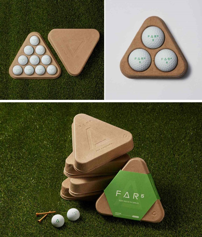 FAR5 에코볼은 보통 골프공과 다르게 자원순환을 뜻하는 삼각모양의 친환경 패키지로 외관부터 눈길을 끈다. 제품 구성으로는 10구 2피스ㆍ3피스 구성의 무광ㆍ유광팩과 가볍게 주기 좋은 3구 3피스 무광팩으로 지인들과 동반자들에게 재미있고, 의미 있는 선물을 할 수 있다.