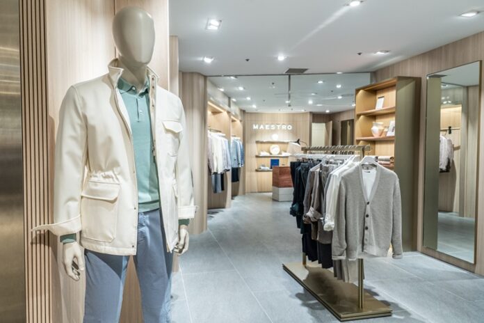 매장 내부 인테리어는 차가운 느낌의 금속과 특수한 무늬가 있는 대리석인 ‘트래버틴(Trevertine)’ 등 전체적으로 베이지 톤의 낮은 채도의 소재로 내부를 꾸며, 오랜 기간 동안 국내 남성 패션 시장을 주도하며 전문적이면서도 깊이 있게 쌓아온 마에스트로만의 여유 있고 부드러운 브랜드 감성을 경험해 볼 수 있게 구성했다.