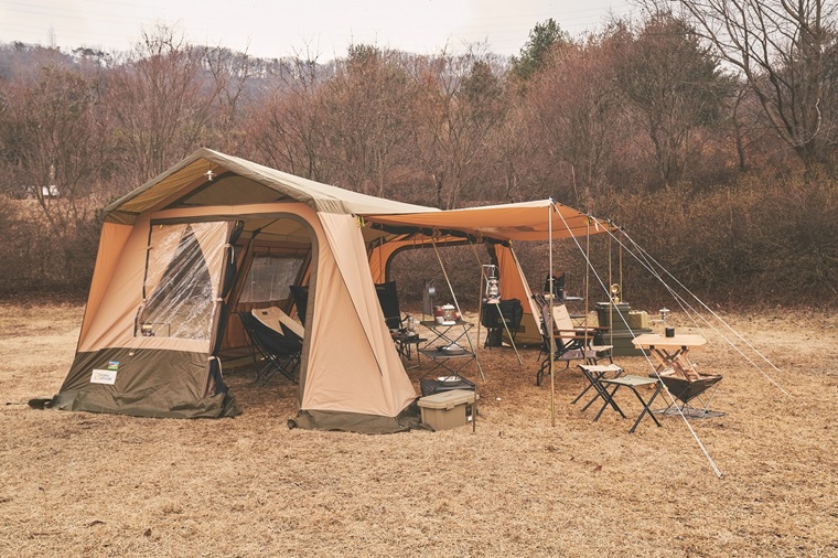 또한 캐빈하우스 텐트 특유의 뛰어난 공간감에 이너 텐트가 더해져 텐트 내부에서도 침실과 생활 공간의 분리가 가능하다. 텐트 모든 면의 창은 완전 개방이 가능해 더욱 편리하며, 캐노피 폴대를 이용해 별도의 타프 없이도 더 넓은 생활 공간을 확보 가능하다. 정면 출입구에는 처마를 적용해 악천후에도 쾌적한 생활 공간을 누릴 수 있다.