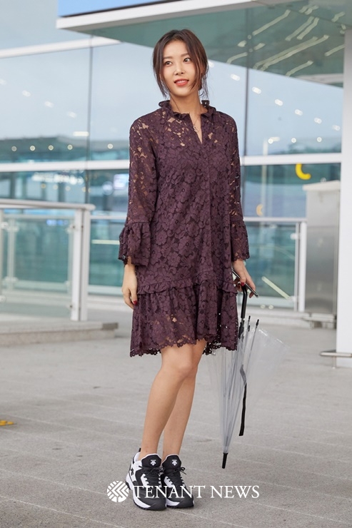 유빈의 세련된 가을 출국 패션을 완성한 레이스 원피스는 글로벌 패션 브랜드 ‘H&M’의 제품으로, 스타일링에 따라 다양한 연출이 가능한 아이템이다.