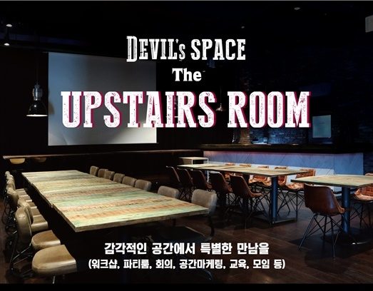 데블스도어 하남점 2층에 231㎡(70평) 규모로 문을 연 업스테어스 룸은 최대 50명이 단체모임을 가질 수 있도록 구성됐으며 빔 프로젝터, 스크린, 강연대, 노트북 등 영상, 음향시설이 갖춰졌다. 또한 14명 이하 단체모임을 위한 소회의실과 행사 준비를 할 수 있는 사무실도 구성해 편의성을 더했다.