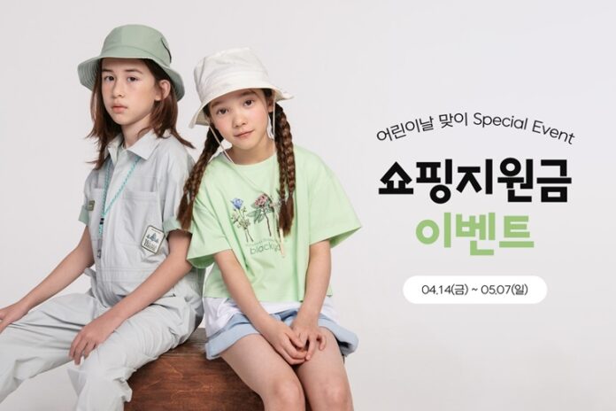 블랙야크 키즈(회장 강태선)가 다가오는 어린이날을 맞이해 쇼핑지원금 이벤트를 다음 달 7일(일)까지 진행한다.