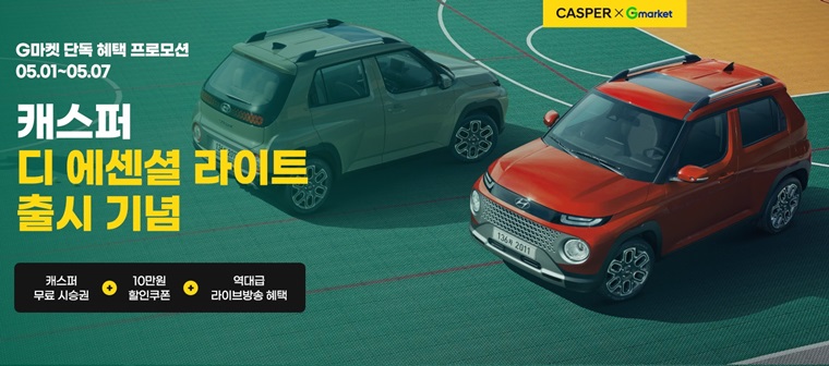 국내 대표 온라인 마켓플레이스 G마켓이 7일까지 현대자동차 캐스퍼 신규 트림 출시를 맞아 단독 이벤트를 진행하고, 캐스퍼 할인쿠폰, 무료시승권 및 라이브방송 등 풍성한 혜택을 제공한다.