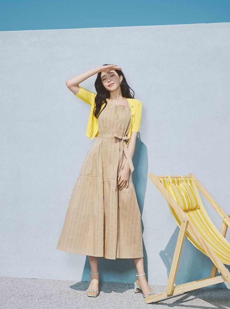 추가로 공개된 화보 컷에서는 스퀘어 넥 라인의 슬리브리스 원피스와 경쾌한 브이넥 라인의 크롭 카디건을 선보여 다가오는 여름철 휴양지에서 즐길 수 있는 아이템을 제안한다.