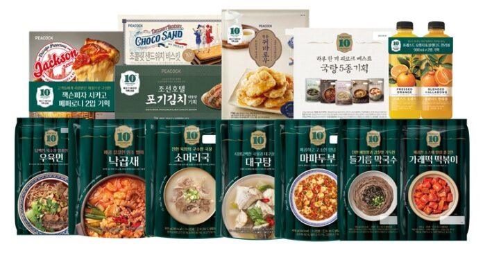 대표 상품으로 한 끼 식사로 좋은 ‘피코크 의정부식 부대찌개 680g’을 40% 할인한 6288원에, ‘피코크 초마짬뽕 1240g’을 30% 할인한 6636원에 판매한다. ‘피코크 맛있게 튀긴 등심돈까스 600g’은 30% 할인된 7686원에, ‘피코크 피콕포차 훈제막창 600g’은 30% 할인한 1만136원에 준비했다.